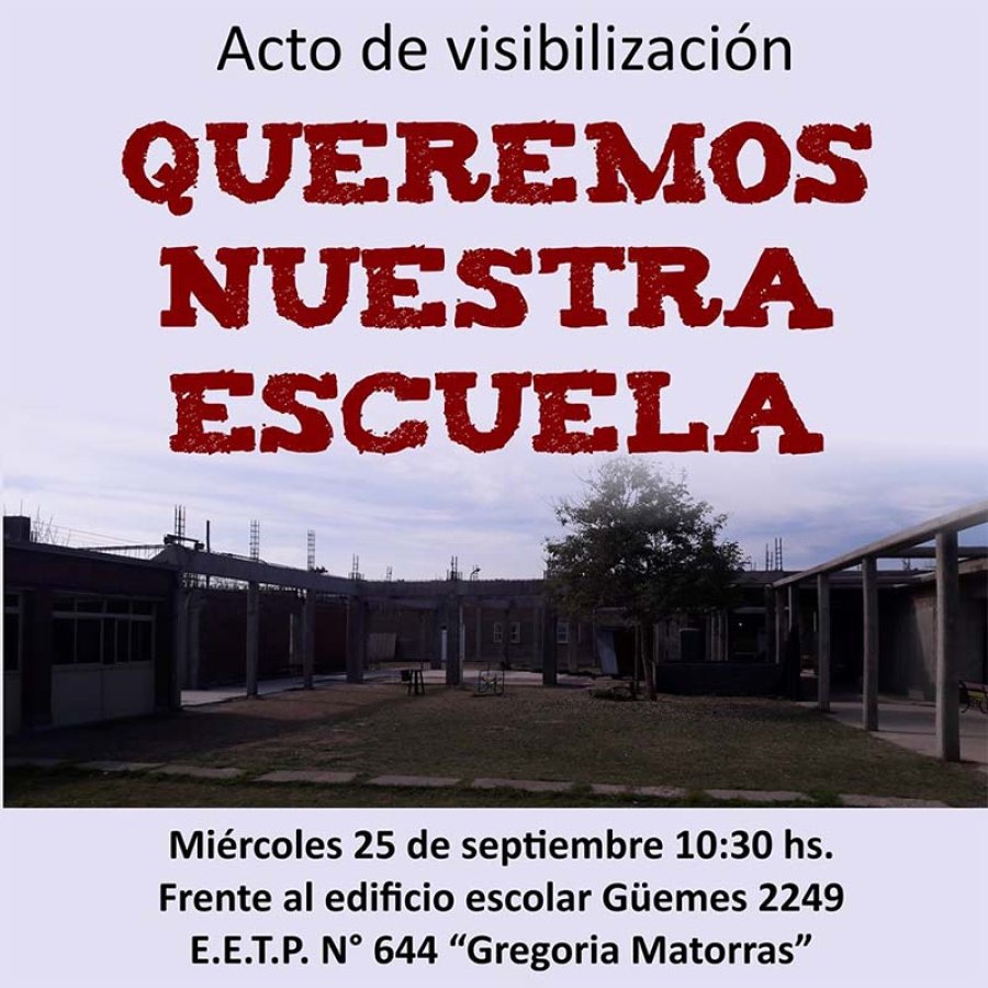 Horas antes de la manifestación que comunidad educativa realizará este miércoles para reclamar por la continuidad de la obra del edificio de la Escuela Gregoria Matorras, el ministerio de educación aseguró que están finalizadas sus gestiones para una nueva licitación y que se aguarda la respuesta del INET que debe financiar la obra. El reclamo será hoy a las 10:30.