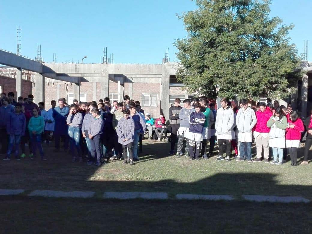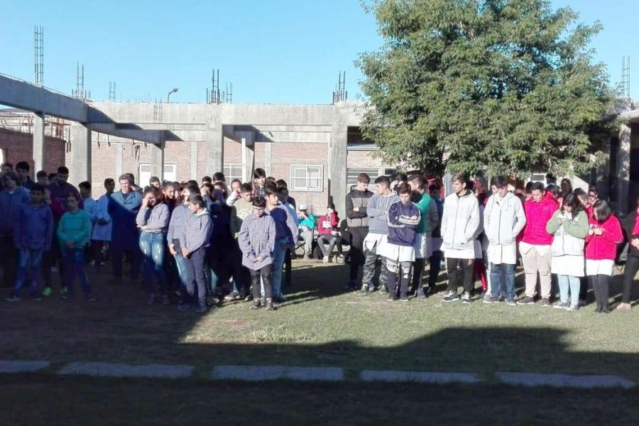 Imagen alumnos de la EET Gregoria Matorras realizan actividades en diferentes salones cercanos a la escuela y con aulas sin terminar.
