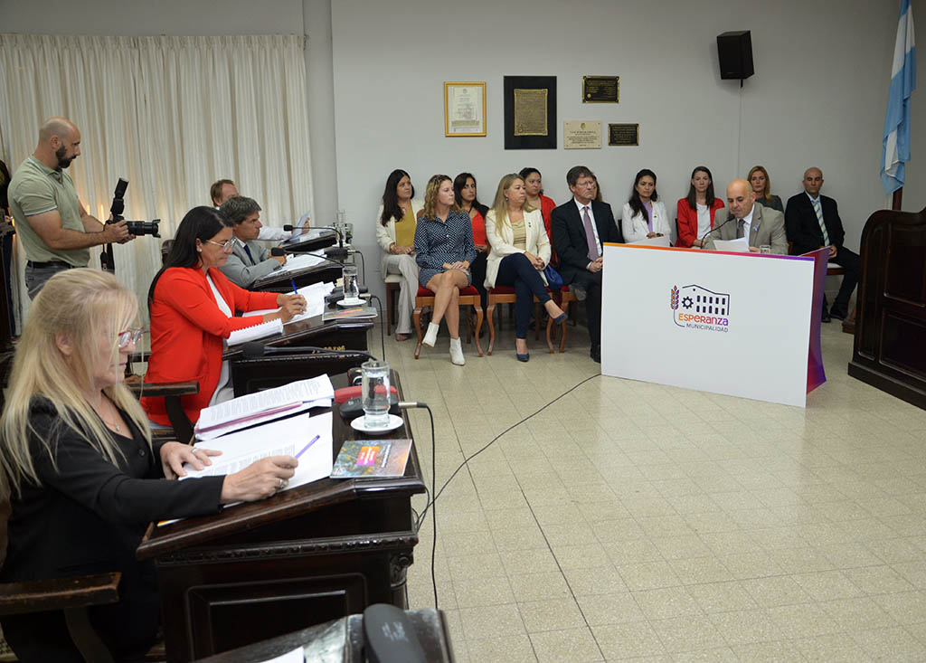 Rodrigo Müller brindó su mensaje en el Concejo Municipal para inaugurar el período ordinario de sesiones. Estuvo acompañado por la totalidad de su gabinete y la diputada provincial Jimena Senn. El senador provincial Rubén Pirola no fue invitado a participar, como sucedía en otras oportunidades.
