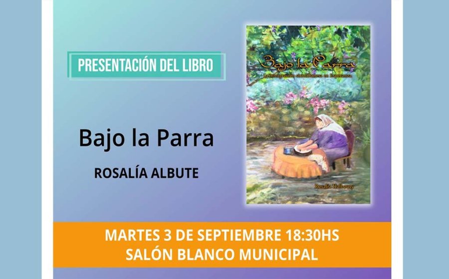 La docente esperancina Rosalía Albute presentará este martes en el Salón Blanco Municipal el libro "Bajo la Parra" publicado por Ediciones Cibeles.