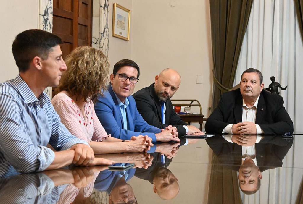 Funcionarios provinciales y el rector Mammarella Crédito: Prensa UNL