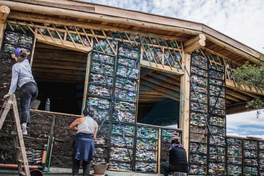 La basura como material de construcción es noble: fácil de conseguir, liviano, duradero, buen aislante térmico... Los productos naturales –o con poco proceso industrial– como el barro, la bosta de caballo y las arcillas hacen que las casas “respiren” y evitan que los ambientes expuestos a la humedad se hongueen.