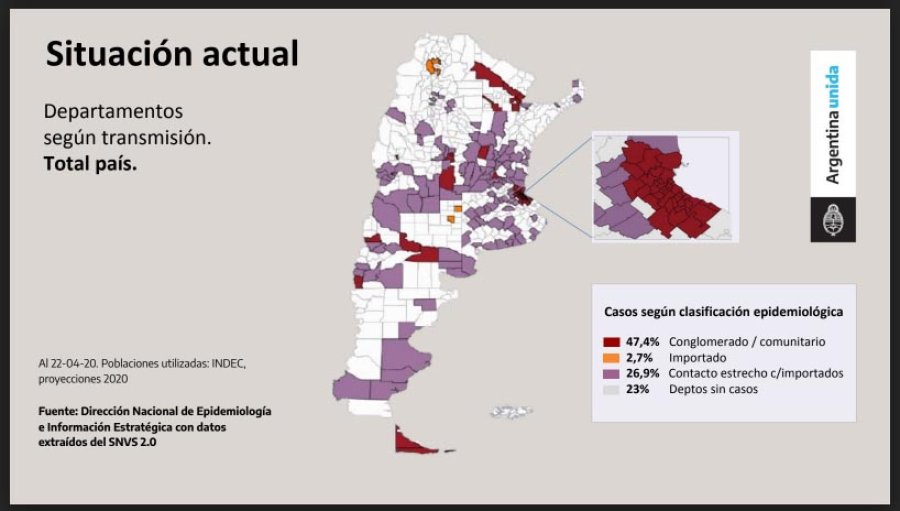 El presidente de la Nación mostró un cuadro donde los departamentos Rosario y Castellanos aparecen en color oscuro marcando las diferencias con el resto de la provincia ya que allí se registran la mayor cantidad de casos junto al departamento La Capital, aunque allí se marca la diferencia que no se registraron nuevos casos en los últimos 15 días.