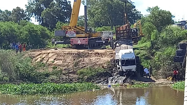 Pasadas las 16, y con la colaboración de una grúa de mayor porte que arribó esta jornada, lograron retirar el camión de las profundidades en donde se encontraba, aproximadamente a unos cinco metros, pero aún no hay rastros del chofer.