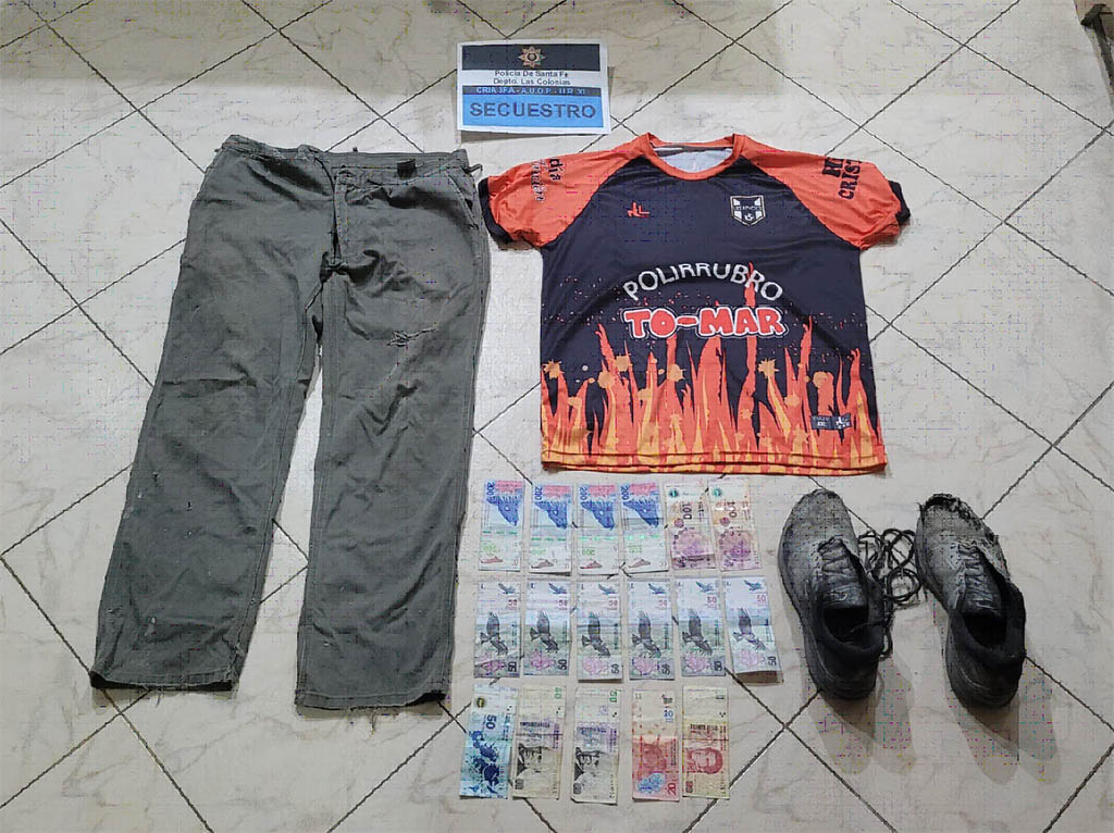 Se procede a aprehender al ladrón y secuestrar de su domicilio un pantalón marca ombú, remera mangas cortas naranja y negra, un par de zapatillas y dinero en efectivo. Horas más tarde el fiscal de turno dispuso que pase a estar en calidad de detenido.