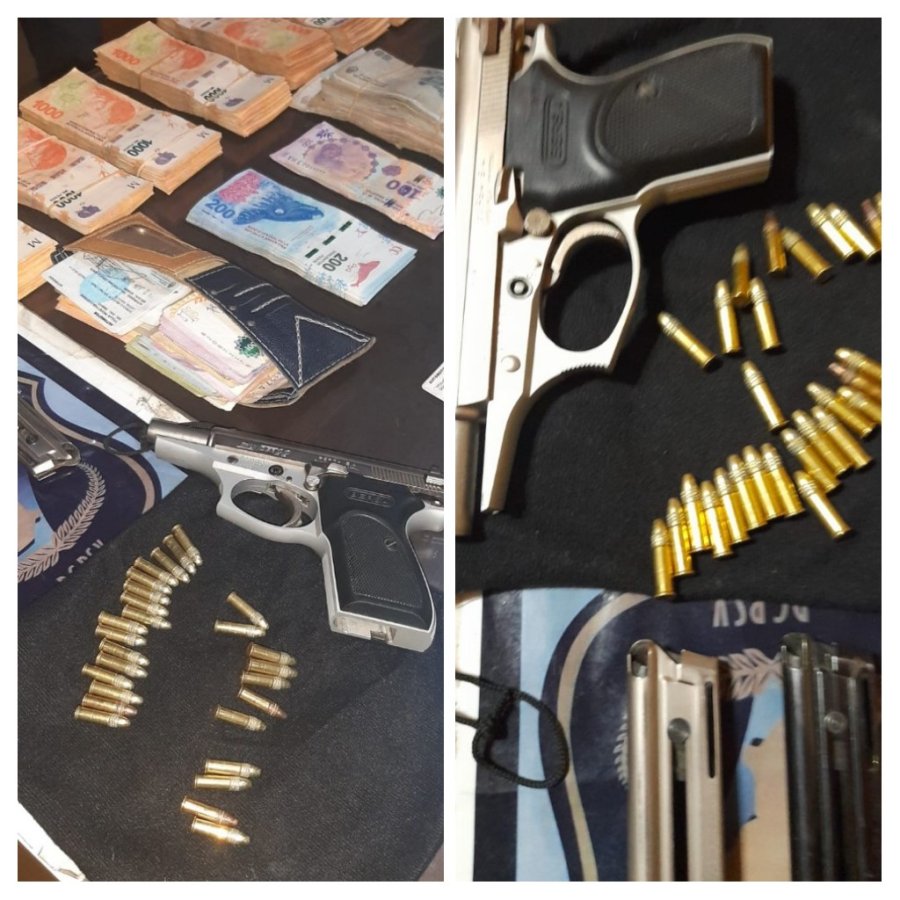 A raíz de la labor realizada en el mismo se logró la identificación de un automóvil Mercedes Benz en el que se conducían estos dos hombres de 46 y 49 años de edad, oriundos de San Carlos Centro y Santo Tomé respectivamente, quienes llevaban consigo una importantísima suma de dinero en efectivo y un arma de fuego Bersa Thunder calibre 22, en condiciones de uso inmediato.