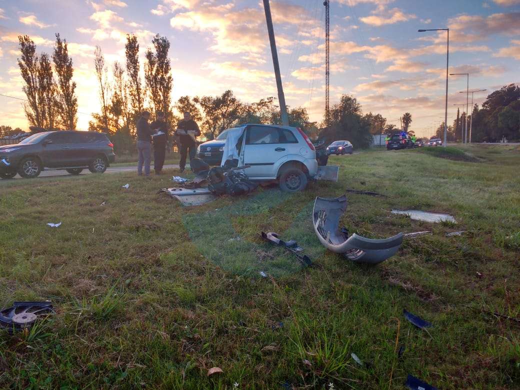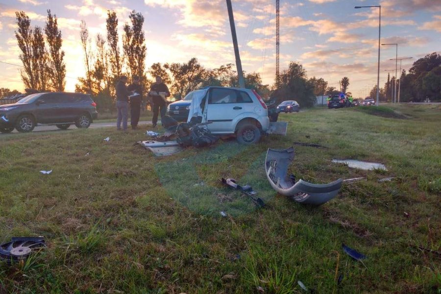 Por razones que se tratan de establecer, en las primeras horas de la mañana del miércoles un Ford Fiesta se despistó por el cantero central de la autovía y terminó embistiendo de forma violenta con una columna de alumbrado público.