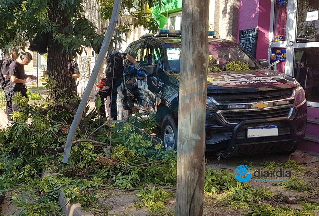 En su recorrido la camioneta impactó violentamente con un árbol al cual le cortó una parte. Vecinos y curiosos entendían que semejante recorrido no podría haberse dado si el móvil policial hubiese impactado a baja velocidad.