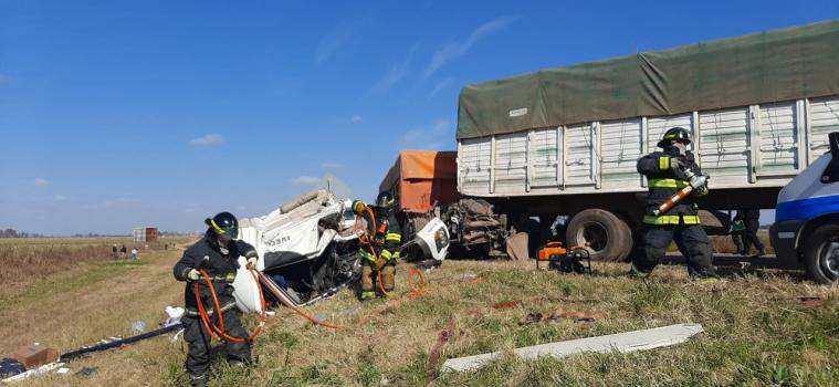 El choque fue en cadena e involucró a tres camiones que iban en sentido sur hacia al norte, a la altura de la granja Peretti.