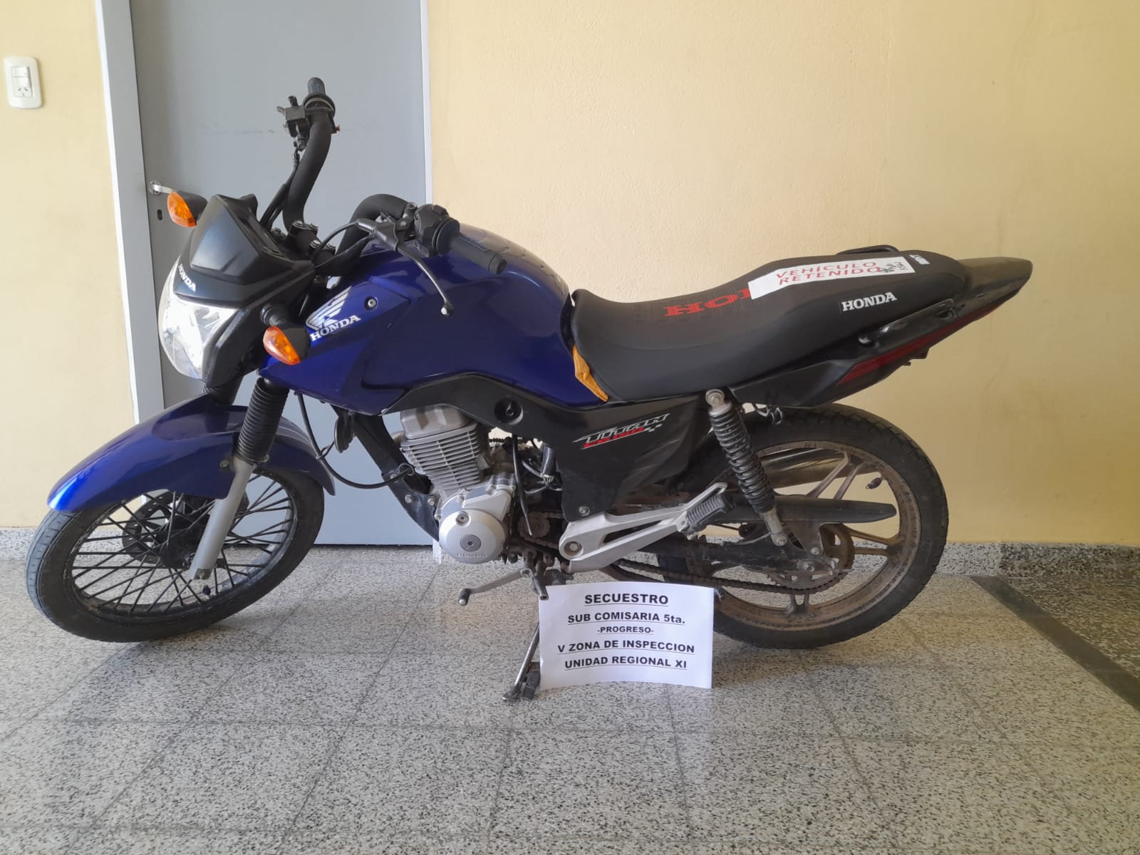 Personal policial de la Subcomisaría 5° URXI, de la localidad de Progreso, tomó conocimiento que Inspectores Municipales habían retenido dicho rodado por falta de documentación y dominio y por tal motivo comenzaron a realizar diligencias investigativas, consultando con el Sistema correspondiente, logrando determinar que la misma tiene vigente un pedido de secuestro por robo, de acuerdo a denuncia radicada por una vecina en la ciudad de Santa Fe, el año pasado.