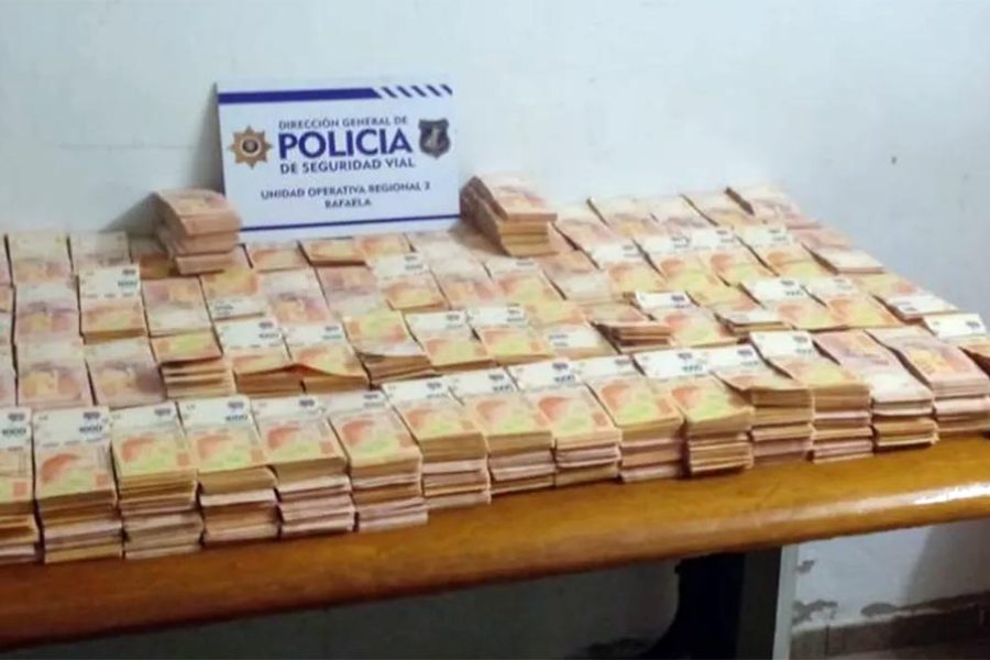 El rodado era conducido por Alan G., quien circulaba junto a Franco L., ambos oriundos de la provincia de Tucumán, y al registrarse el baúl se ubicaron dos cajas que contenían 27.760.000 pesos en efectivo.