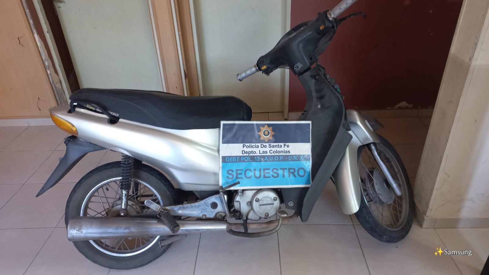 En la madrugada de hoy una vecina de calle Lavalle al 2100 dio cuenta de la sustracción desde la vereda de su domicilio de una motocicleta Guerrero Trip color gris. Atento a ello personal policial de patrullaje fue puesto en alerta al tiempo que efectivos de la Comisaria Primera con colaboración de la Central de Control y Monitoreo realizaron la visualización de las cámaras de seguridad de la ciudad y el seguimiento de movimientos de los posibles involucrados.