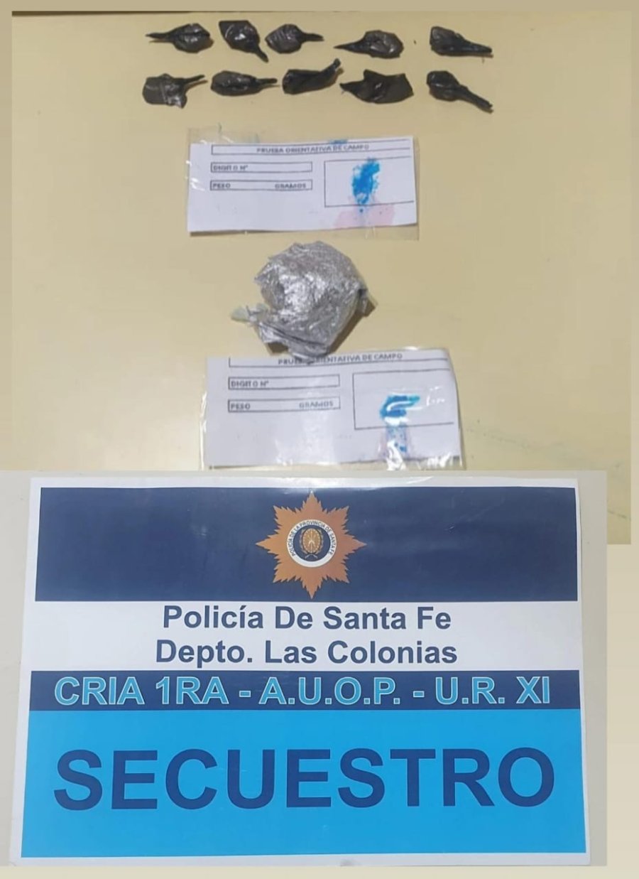 Un segundo procedimiento tuvo lugar en la cuando personal policial de la Comisaría Primera URXI realizaba tareas de patrullajes por barrio sur y decidió identificar a un hombre de 26 años y una mujer de 24 años, ambos con domicilio en Esperanza, que se encontraba en actitud sospechosa en la esquina de calles Moreno y Soler de esta ciudad. Ambos debieron exhibir a los uniformados sus pertenencias, estableciéndose que la mujer llevaba dentro de una riñonera sustancias presumiblemente estupefacientes, por lo que se dio inmediata intervención a la Brigada Antinarcóticos, trasladándose el procedimiento policial y los involucrados a la Dependencia Policial para ser puesto a disposición de la Justicia e investigar la procedencia de los elementos que llevaban consigo.