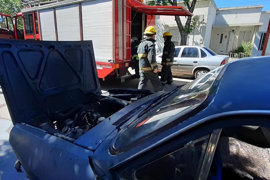 Este lunes en la esquina de Chacabuco y Alberdi un Renault 12 debió detener su marcha de inmediato por un incendio que se generó en la parte delantera del mismo.