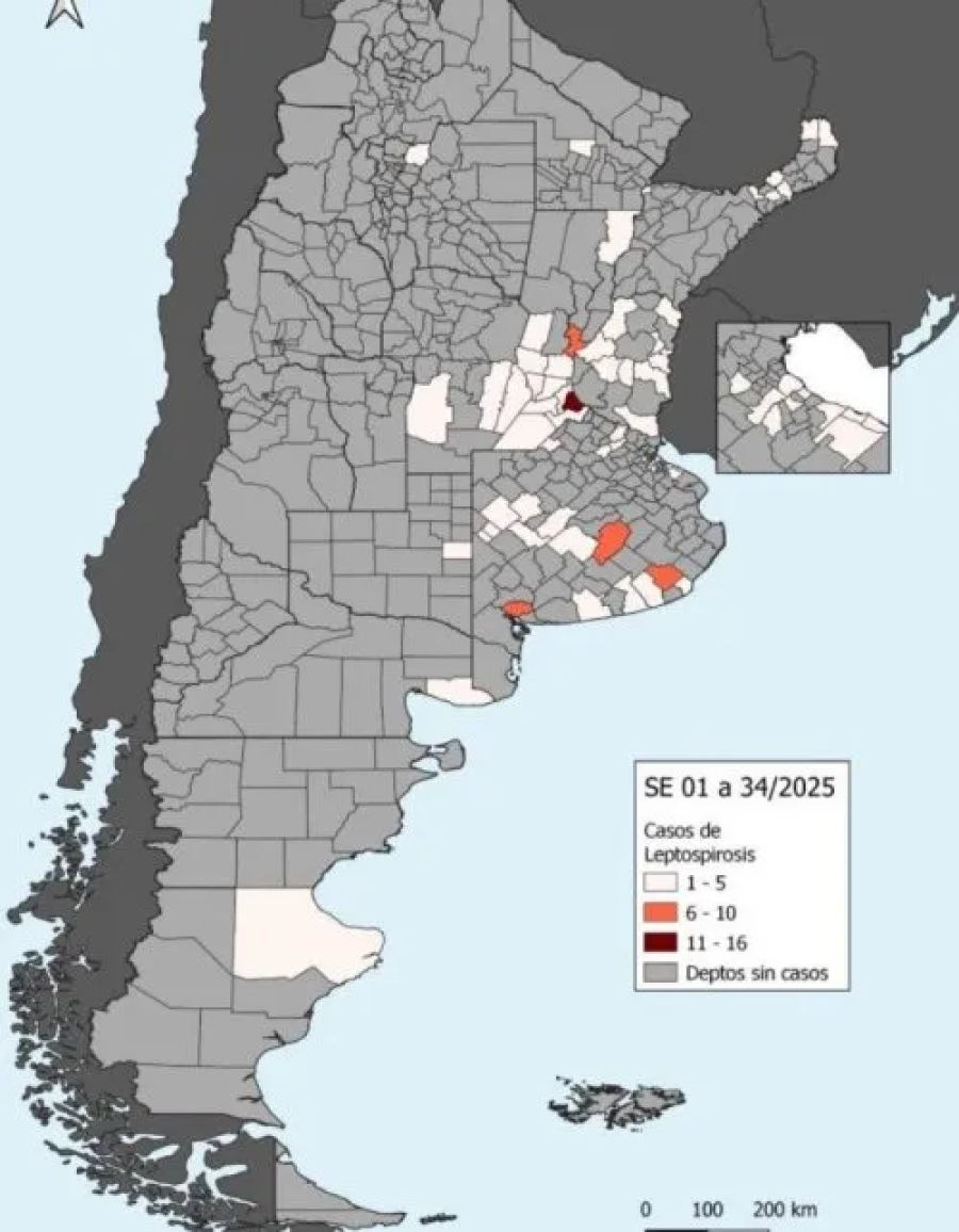 Santa Fe se mantiene entre las provincias con mayor cantidad de casos de leptospirosis en la Argentina y Rosario es el único Departamento del país en rojo, según el Boletín Epidemiológico Nacional (BEN). El departamento La Capital, en naranja.