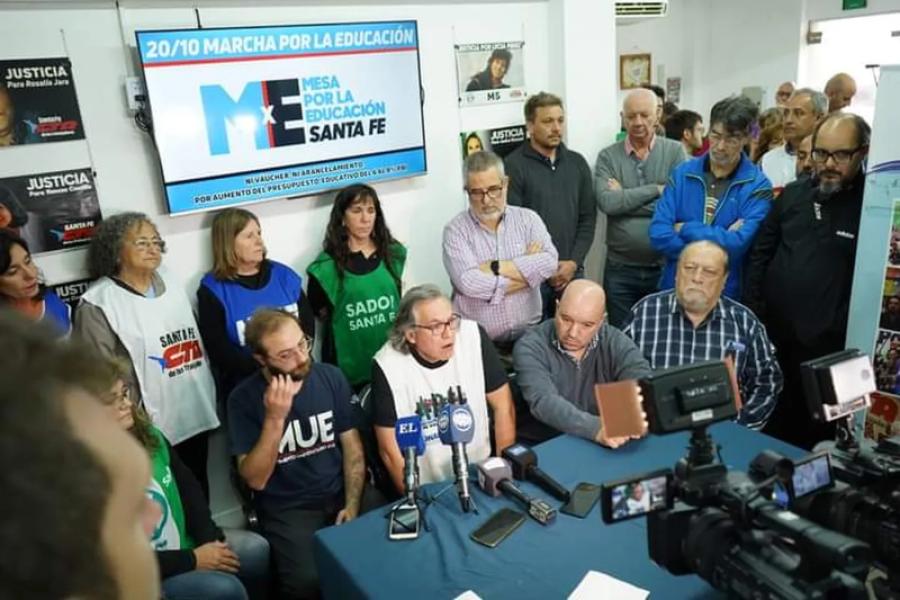 Más de una veintena de entidades sindicales, movimientos estudiantiles y organizaciones sociales conformaron la Mesa por la Educación de Santa Fe y llevarán adelante su primera acción este viernes 20, a escasas 48 horas de las elecciones presidenciales, en defensa de la educación pública y gratuita. Será una movilización por las calles de la ciudad, a las 17 horas, partiendo de la Plaza del Soldado hacia la 25 de Mayo.