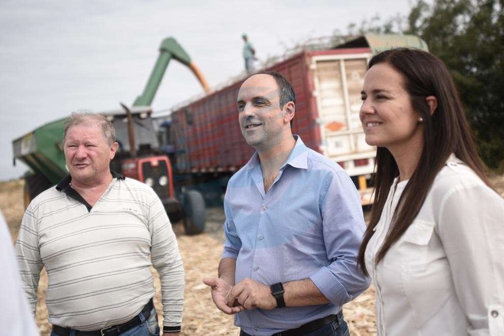 Durante la visita a los campos de Carlos Pellegrini, José Corral y Anita Martínez dialogaron con varios productores. Uno de ellos, Francisco, les describió en qué consistía la tarea que este viernes se llevaban a cabo en su campo. “Estamos recolectando el maíz en este momento, que se carga en camiones; algunos camiones van al acopio, otros directo al puerto, dependiendo de cómo salga el creal, si tiene mucha o poca humedad”. “Con dos hectáreas llenamos uno de estos camiones que tenemos acá”, les comentó Francisco a los candidatos, al brindar particularidades de la labor cotidiana. “Por lo que parece el maíz está rindiendo muy bien y la soja está bien también”, contó.