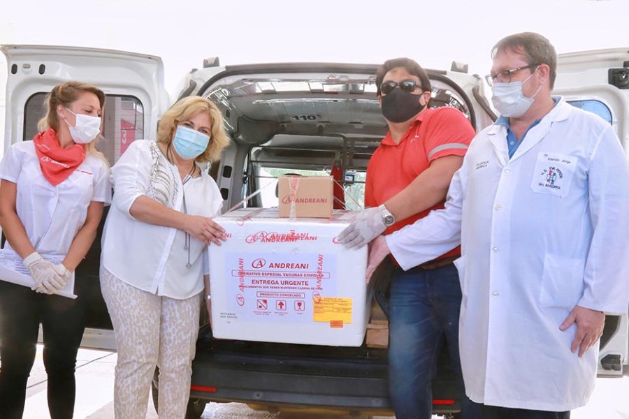 La distribución estará a cargo de la firma Andreani, y las vacunas serán distribuidas de acuerdo a las siguientes cantidades: Buenos Aires (123.000), Santa Fe (24.000), CABA (23.000), Córdoba (21.900), Tucumán (11.500), Mendoza (11.000), Entre Ríos (10.100), Salta (8.300), Chaco (7.700), Corrientes (6.700).
