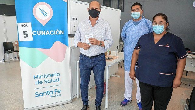 El mandatario santafesino se inoculó en el Cemafé. “Hoy me vacuné porque me tocó el turno. Más de 60 años estamos vacunando en la provincia”, afirmó.