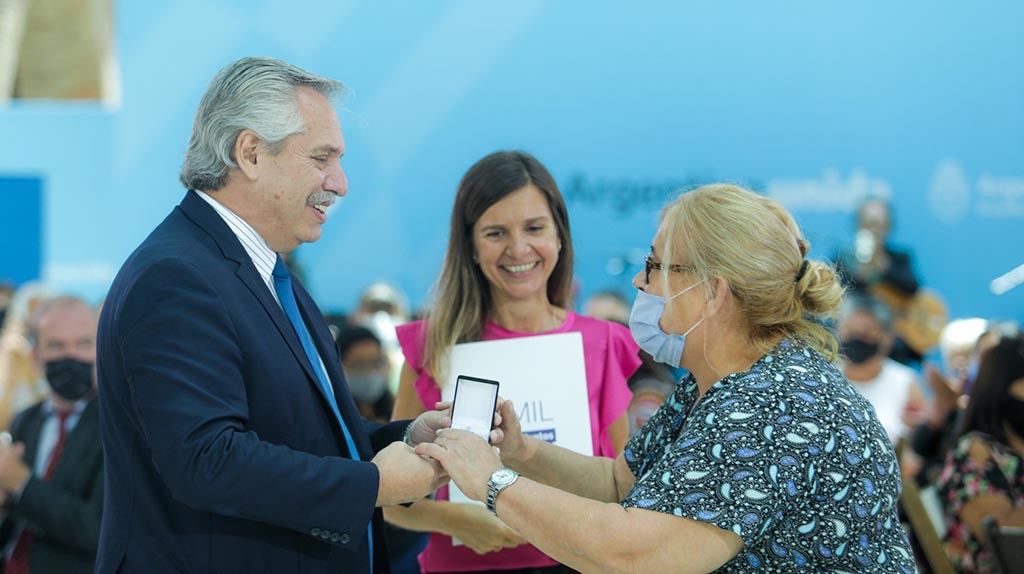 Asimismo, hoy el Jefe de Estado entregó la jubilación 50.000 por el Reconocimiento de Aportes de Tareas de Cuidado que se puso en funcionamiento el 19 de julio de este año a través del Decreto 475/2021, y que permitió que miles de mujeres en edad de jubilarse, que son madres y no contaban con los 30 años de aportes necesarios pudieran sumar años de aportes por cada hijo o hija.