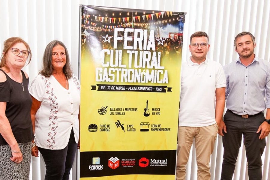 A beneficio de la Biblioteca Mariano Moreno, la Comuna de Franck lanzó este lunes la Feria Cultural y Gastronómica que tendrá lugar el próximo viernes 10 de marzo a partir de las 20 en la Plaza Sarmiento.