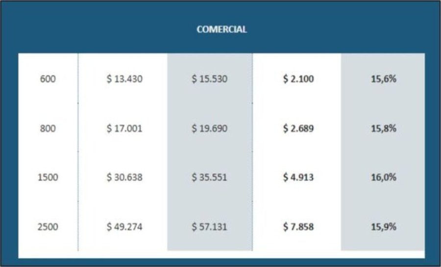 En el caso de los consumos de Grandes Usuarios con potencia menor a 300 kW, y usuarios generales de Pequeñas Demandas (comercios, industrias, consorcios de propiedad horizontal e instituciones) se aplicará la misma política de retiro de subsidios para usuarios residenciales de Nivel 1 (altos ingresos).