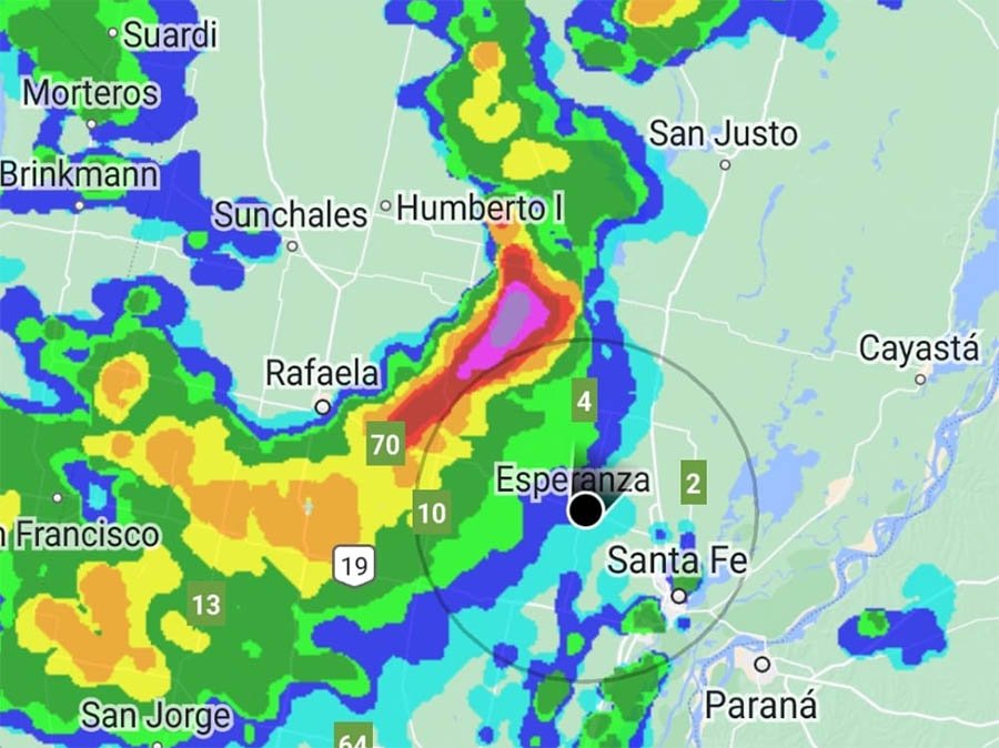 El alerta se cumplió y fue generalizado para algunas localidades a la vera de la ruta 34 en Lehmann, departamento Castellanos y también en la zona de las rutas 10 y 82 S en el norte de Las Colonias.