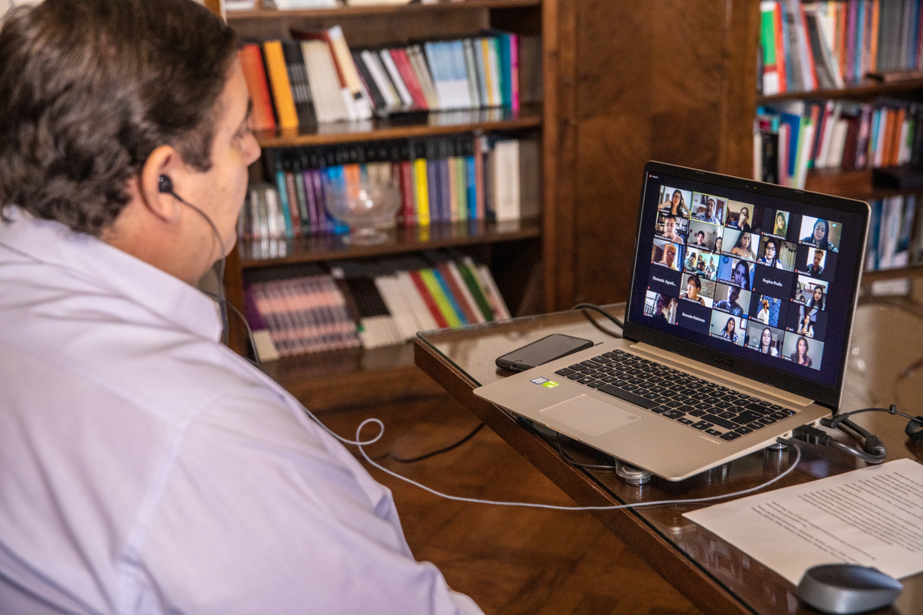 Como parte de una serie de acciones de integración y contención por el contexto especial generado por la pandemia de Coronavirus CIVID-19, el rector de la Universidad Nacional del Litoral (UNL), Enrique Mammarella, realizó este lunes una bienvenida virtual a los 72 estudiantes internacionales que se encuentran de intercambio en las ciudades de Santa Fe y Esperanza. Sentado en su despacho, Mammarella estableció una videoconferencia grupal con todos estos jóvenes estudiantes provenientes de universidades de Alemania, Bolivia, Brasil, Chile, Colombia, España, Francia, Italia, México, Nicaragua, Paraguay, Perú y Uruguay.