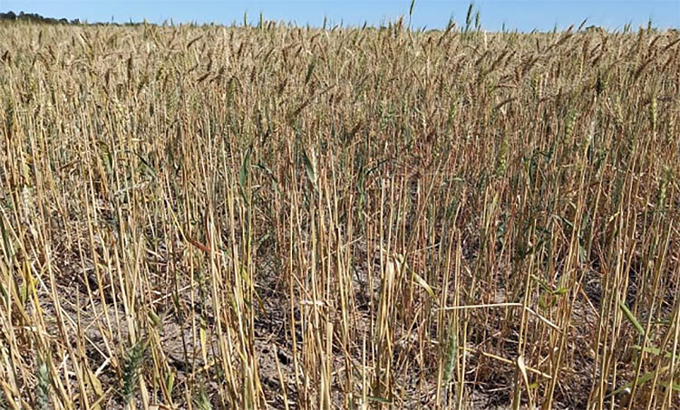 b) en el resto de la superficie de estudio, las escasas a nulas lluvias consolidaron los indicadores que se registraron anteriormente en los sembradíos, plantas con diferente coloración en las hojas, escasa altura, variado volumen de macollaje, poco desarrollo de sus estructuras, menor número de espigas, débiles y granos pequeños, por la ausencia prolongada de agua útil en los suelos.