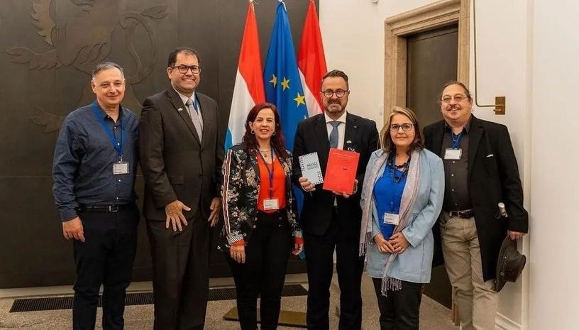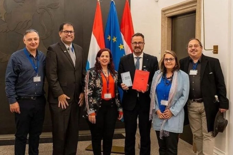Héctor Fischbach como presidente y Natacha Sturm como secretaria agradecieron la gestión realizada por el comisionado en Luxemburgo Tom Diederich y la presencia de los dirigentes brasileños, acompañando a Verónica Fischbach y Adrián de Lisa, miembros delegados de la AAL.