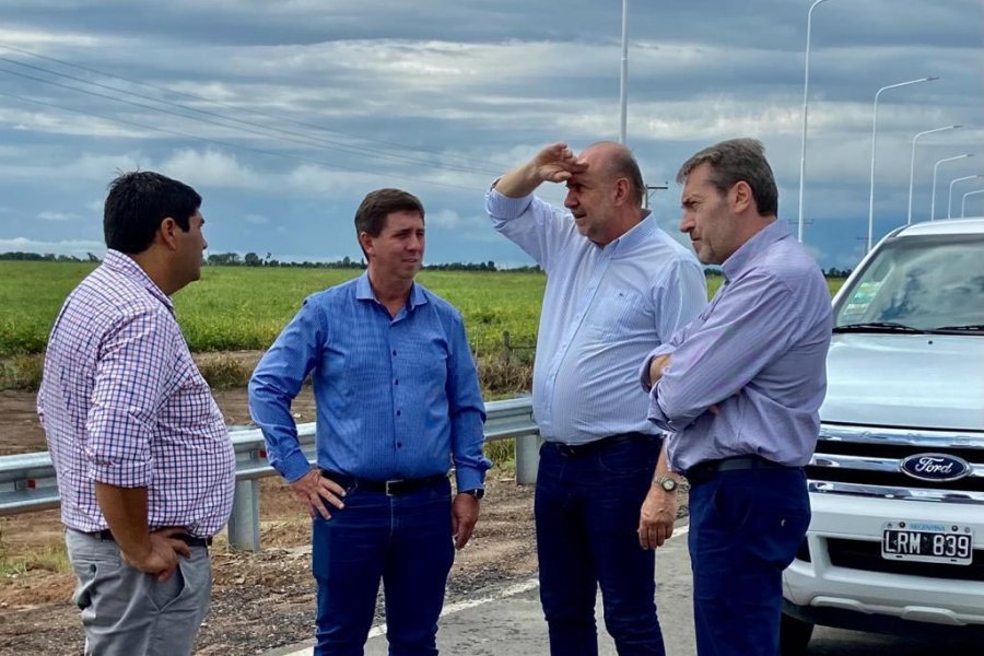 Acompañado del senador Ruben Pirola y autoridades de Vialidad Provincial el gobernador recorrió los trabajos de pavimentación de la ruta de acceso a esa localidad de Las Colonias desde la ruta 4.