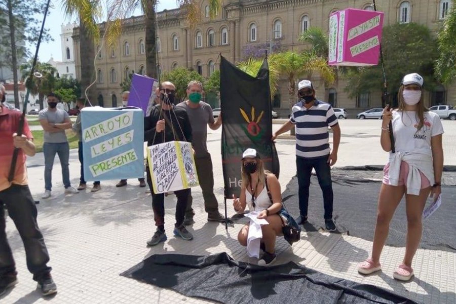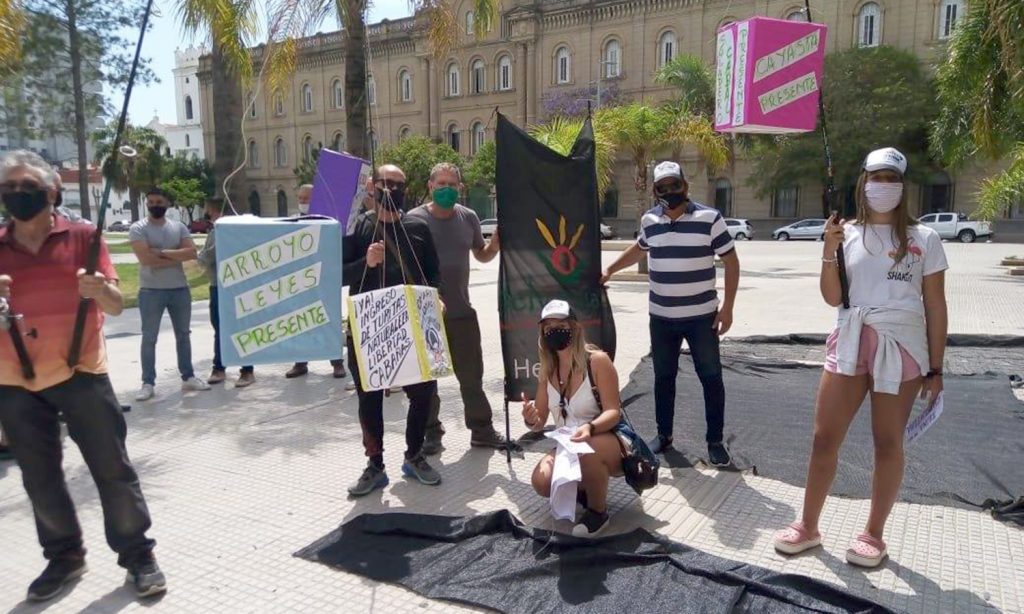 Representantes del sector de Cabañas, Bungalows, Complejos, Hospedajes, Campings y Guías de Pesca deportiva y avistaje de flora y fauna, de los corredores de la Ruta Provincial Nº 1 Teófilo Madrejón y de la Ruta Nacional Nº 11, se manifestaron hoy frente a la Casa Gris, en el marco de las restricciones que impiden trabajar al sector en medio de la emergencia sanitaria del Covid-19.