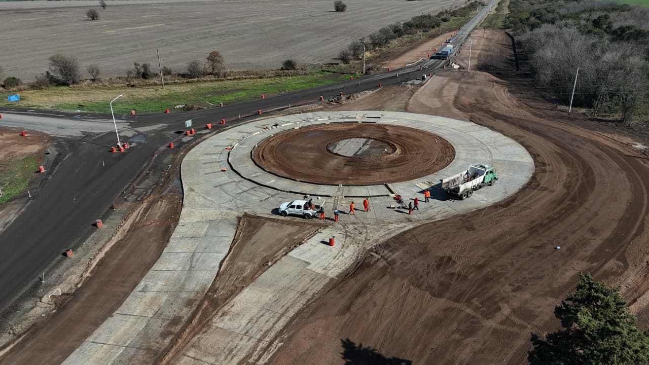 La obra de la rotonda de la Ruta Provincial N° 4 y la Ruta Provincial N° 80s, en el acceso a Progreso, comenzó en diciembre de 2024, presenta un 95 % de avance de obra y el gobierno provincial invierte más de $ 5.900 millones para su construcción.