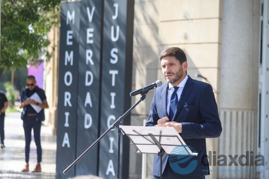 El gobernador Maximiliano Pullaro, participó este domingo del acto central en conmemoración del 24 de Marzo, Día Nacional de la Memoria, la Verdad y la Justicia, que se llevó a cabo en el Ex Centro Clandestino de Detención, Ex Comisaría 4ª de la ciudad de Santa Fe.