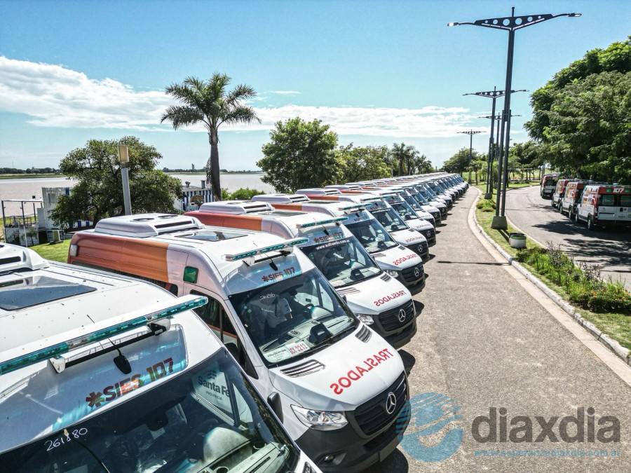 En el marco de la recuperación de la capacidad operativa del sistema de emergencias y traslados de la salud pública por parte del Gobierno de Santa Fe, este lunes el gobernador Maximiliano Pullaro, junto a la vicegobernadora Gisela Scaglia, presentaron la nueva flota de 174 vehículos 0 Km, que serán distribuidos de acuerdo con criterios sanitarios para reforzar la atención en todo el territorio santafesino.