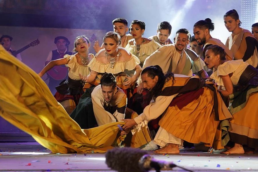 Con la Plaza Próspero Molina colmada de público, el elenco santafesino realizó su presentación, en la que se rindió homenaje al chamamé, los pueblos originarios y a Ariel Ramírez. El bailarín esperancino Juan Giménez integró la delegación santafesina.
