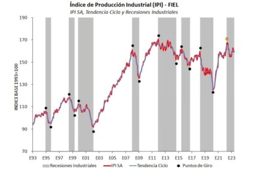 El Índice de Producción Industrial (IPI) registró en mayo una caída interanual de 3,4%, al tiempo que en cinco meses el nivel de actividad del mismo periodo de 2022 fue de -0,1%, de acuerdo a información preliminar difundida por la Fundación de Investigaciones Económicas Latinoamericanas (FIEL).