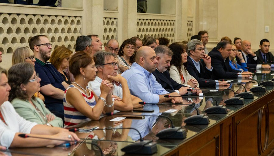 Encabezado por el rector Enrique Mammarella y el intendente Emilio Jatón, el acto de presentación se concretó este lunes 27 en el histórico recinto ubicado en el primer piso del Rectorado UNL. En este contexto, se firmó el convenio de edición que permitirá publicar de manera impresa de esta serie editorial. La ceremonia, además, fue escenario propicio para distinguir con el premio “El Bernegal” a la Dra. Raquel Chan y al Dr. Juan Carlos Hidalgo, primer rector electo de la UNL en este período democrático.