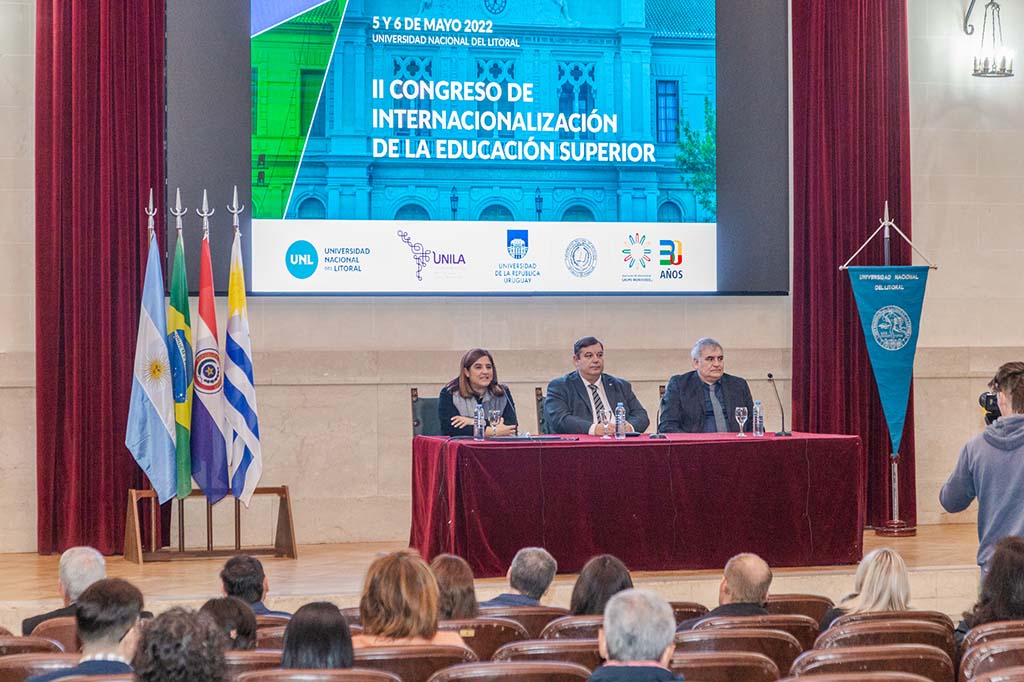 El jueves 5 y viernes 6 de mayo la UNL fue sede del II Congreso de Internacionalización de la Educación Superior, que se realizó en modalidad presencial en el Rectorado y el Foro Cultural. Participaron alrededor de 100 profesores, investigadores, estudiantes y gestores de internacionalización de la región y se presentaron más de 70 trabajos. Contó con disertaciones a cargo de conferencistas de Brasil, España, Paraguay, Uruguay y Argentina.
