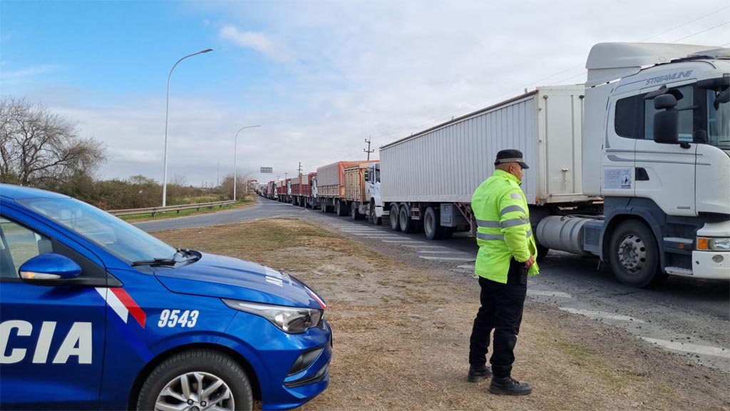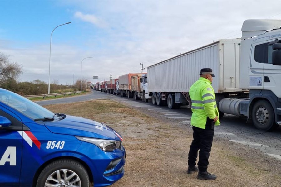 ► En la Autopista Rosario - Buenos Aires, jurisdicción de Villa Constitución. Transportistas concentrados realizan una retención de tránsito pesado en sentido hacia Rosario, mientras que el tránsito liviano circula por carril rápido.