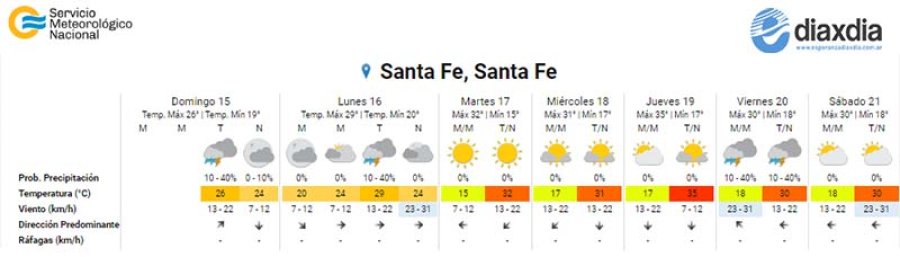 El pronóstico del tiempo elaborado por el mismo organismo establece la posibilidad de algunas precipitaciones este domingo y hasta un 40% de probabilidad de lluvias para la tarde del lunes.