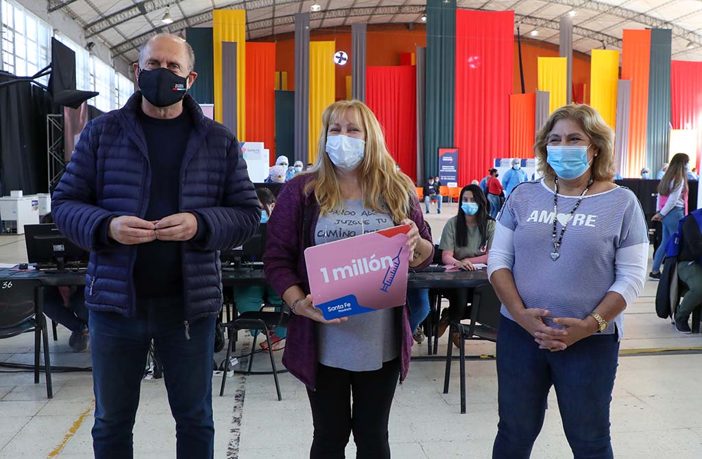 El gobernador de la provincia, Omar Perotti, recorrió durante la mañana del sábado, el centro de vacunación La Esquina Encendida, ubicado en la ciudad capital, donde se inoculó a la persona que estableció el registro sanitario del millón de personas vacunadas con la primera dosis contra el Covid19. “Así es, llegamos al millón de santafesinos y santafesinas vacunados con la primera dosis”, expresó Perotti junto a la ministra de Salud, Sonia Martorano.