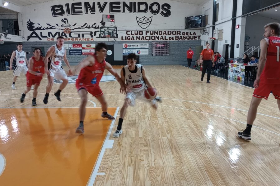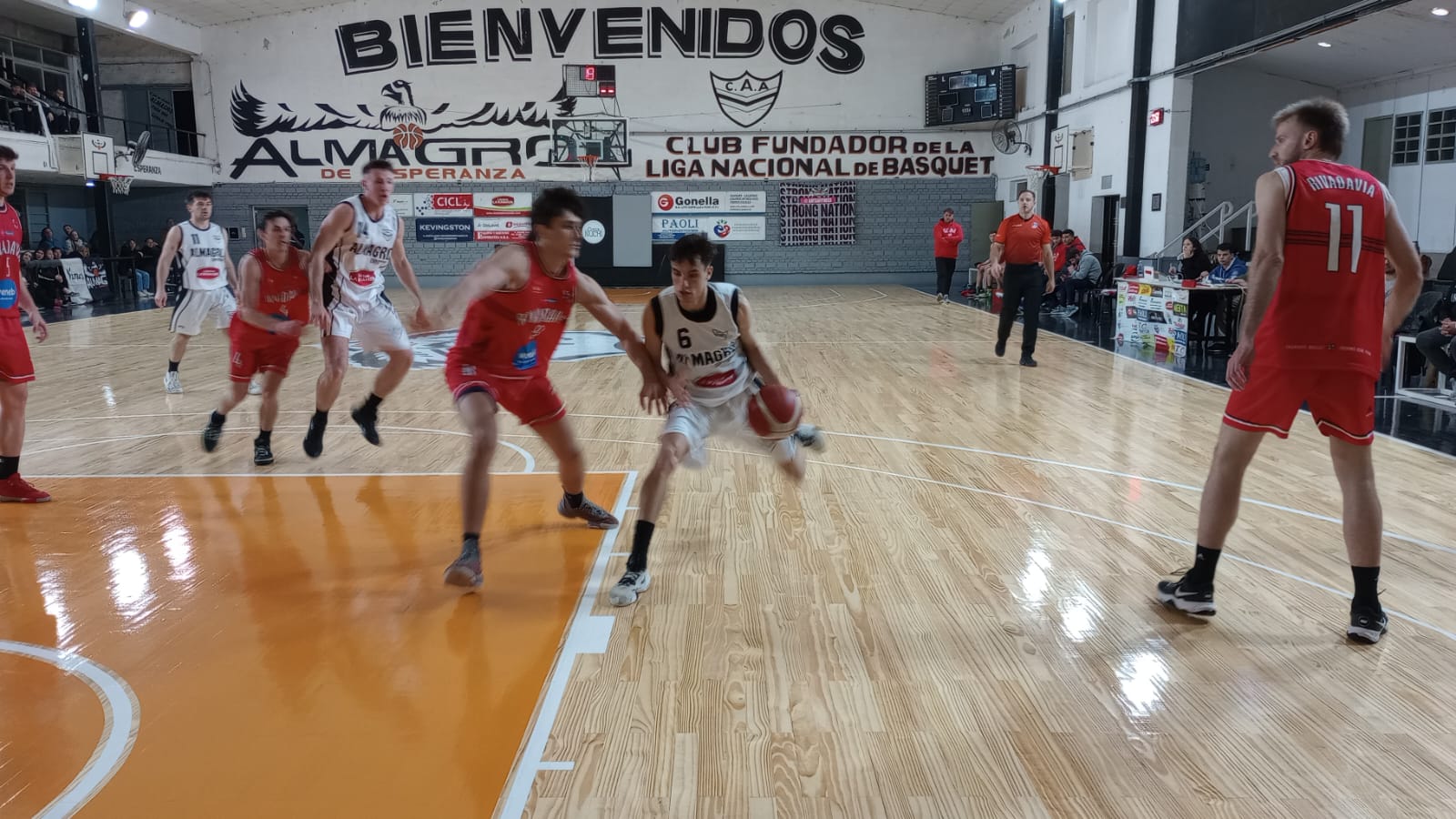 ALMAGRO “A” (85): Matías Felcaro 0, Leonardo Strack 15, Enzo Durigón 2, Mateo Spiés 8, Federico Pfeiffer 10 (FI); Franco Parola 4, Diego Collomb 8, Facundo Viola 11, Rodrigo Riquelme 21, Valentín Depetris 6. DT: Leandro Spiés.