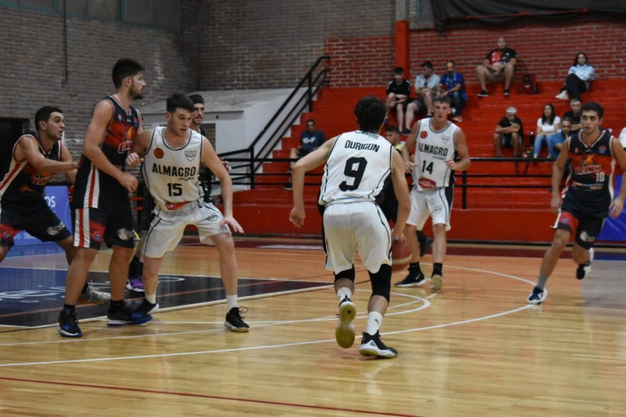 ALMAGRO: Felcaro 9, Barlasina 5, Viola 4, Riquelme 18, Pfeiffer 20 (FI), Durigón 1, Parola 2, Depetris 2, Uriona 5, P.Spiés 4 y L.Anderson 0. DT: L.Spiés.