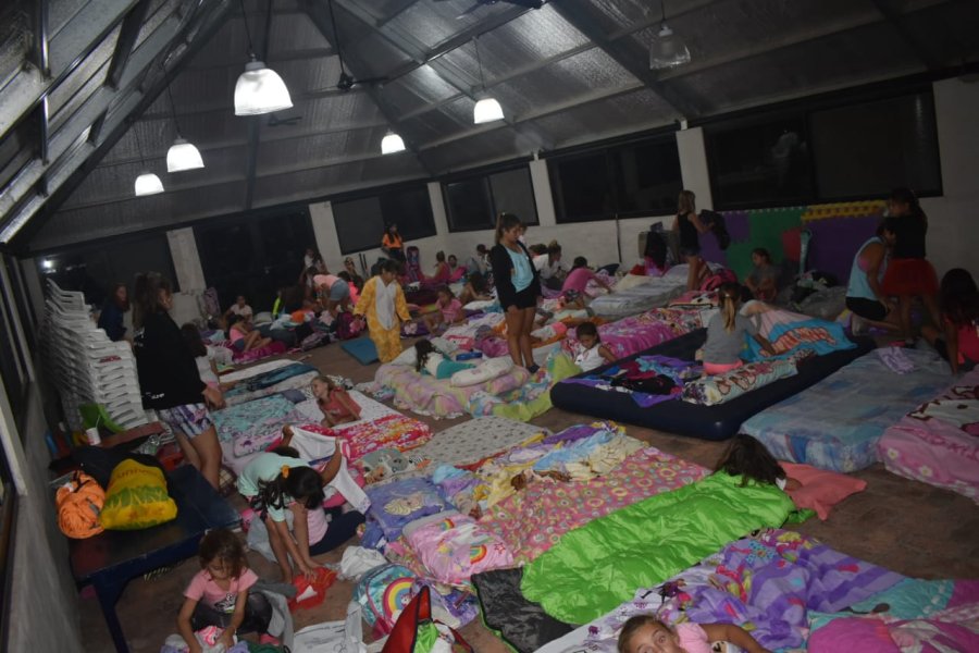 Las nenas disfrutaron de muchísimos juegos, fiesta de disfraces con espuma y barra de tragos sin alcohol y finalmente una pijamada en los quinchos del amplio predio que posee el club.