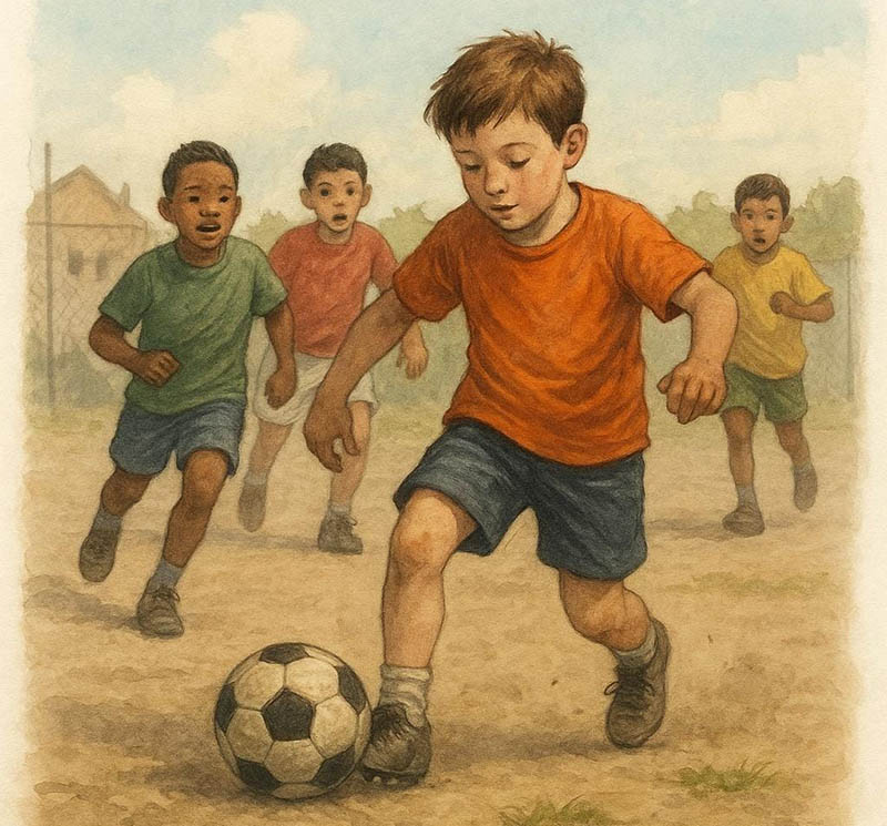 Un partido en el que no hay contratos millonarios ni cláusulas de rescisión. Hay solo botines embarrados, pelotas que pican mal y sueños que rebotan en cada pase. Ese partido es el de la infancia.