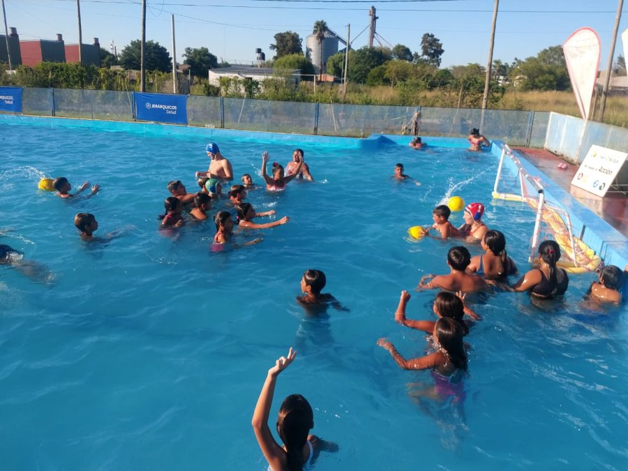 Después se los llamó a todos los chicos que estaban observando. Se le fue enseñando en el agua, con lo más básico, y se sintieron muy contentos. Aprendieron rápidamente, los pases, la técnica de flotación, que es uno de los aspectos más difíciles y que es necesario saberla, para jugar.