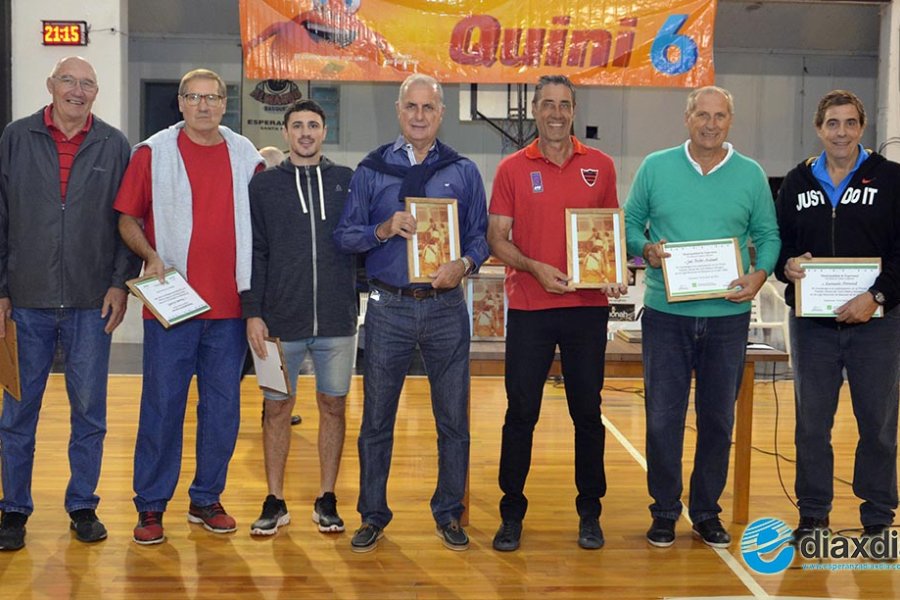 Sentido reconocimiento a quienes animaron el primer partido de la Liga Nacional de 1984, entre Almagro y River Plate. Estuvieron presentes varios de los integrantes del plantel esperancino, con solo ausencias por estar radicados fuera de la ciudad, y Marcelo Duffy quien jugara en la entidad “millonaria” y actualmente es el DT de Olimpia Venado Tuerto. Asistieron además los Presidentes de la Federación y Asociación Santafesina, Roberto Monti y César Chemez.