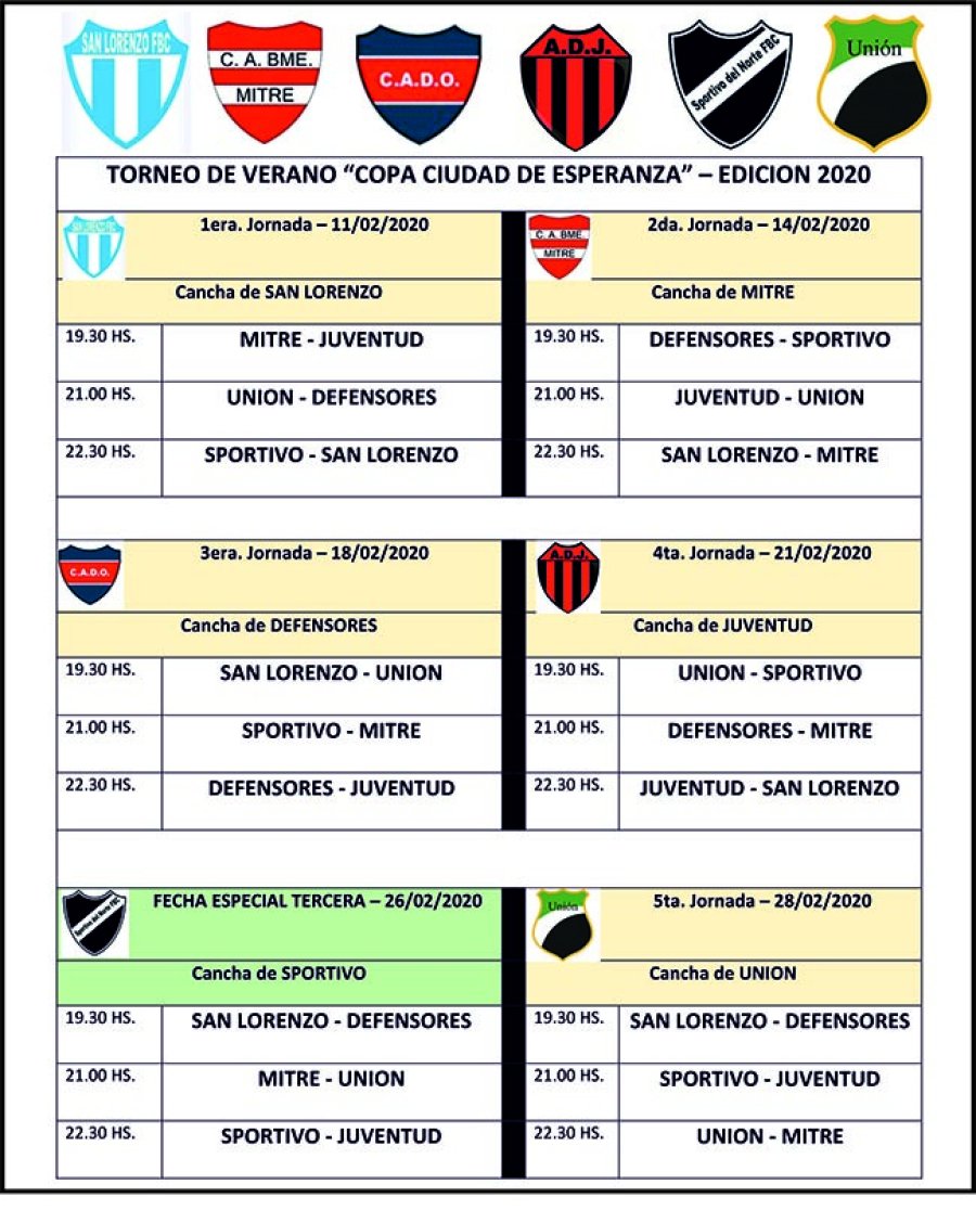 Los Presidentes y representantes de los 6 clubes de fútbol de la ciudad de Esperanza, dispusieron organizar en conjunto una nueva edición del torneo de verano “Copa Ciudad de Esperanza”.