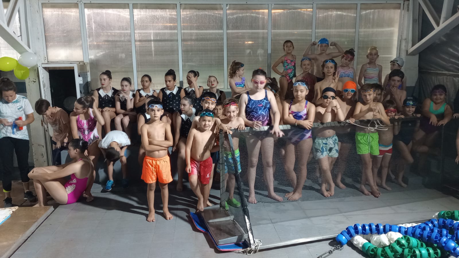 Los distintos grupos hicieron una muy buena exhibición de las distintas actividades formativas y deportivas. Participaron los grupos de Jardín Deportivo, Natación Artística, Natación, en lo que es la piscina. Y también hubo numerosos grupos de Tenis y de Gimnasia deportiva, que hicieron lo suyo, en sus respectivos ámbitos.